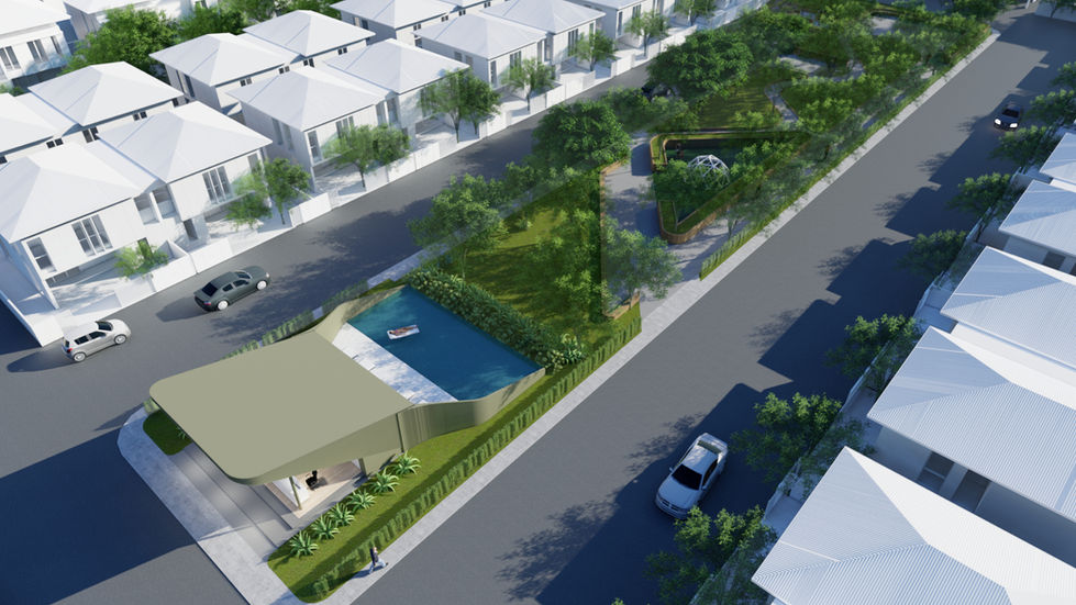 The Bang Yai housing development project consists of 162 housing units categorized into 3 types of houses. This project aims to foster a community that promotes longevity, adaptability and sustainability with architecture and landscape design from the pavilion to every housing unit. The project area is 35,000 sqm in area and includes a main park equipped with a jogging track and clubhouse. The park is stretched in a manner that allows for a picturesque view of the entire neighborhood while still being accessible and open to all housing units.
